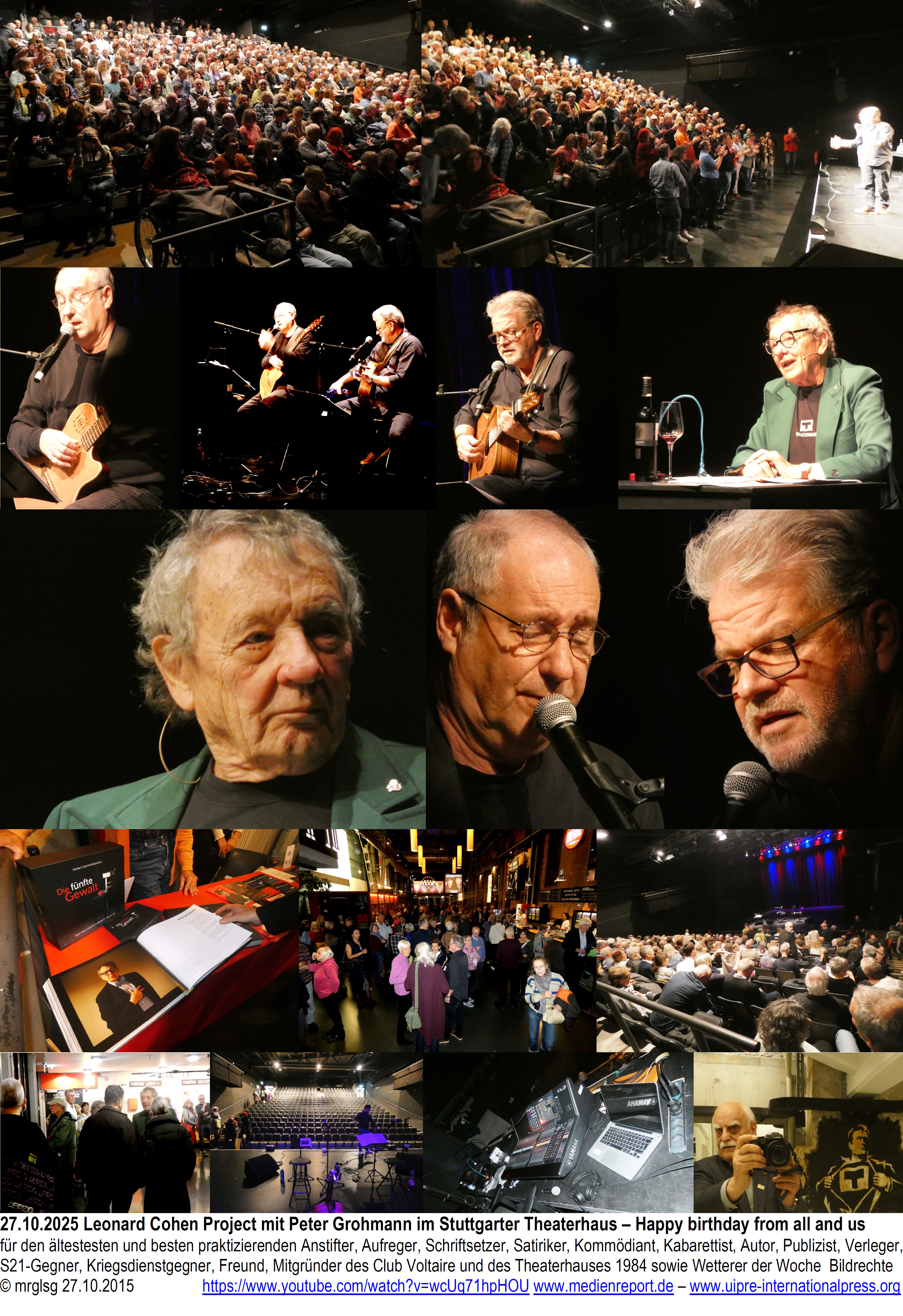 Großes Theater im Theaterhaus – 40 Jahre und kein bisschen Weise und leise. Gestartet in Stuttgart-Wangen. Politische Liebes- und Sicherungserklärungen zu Recht. Zahlreiche Geburtstagsgrüße von namhaften Künstlern. Überbetont begleitet mit originellsten Jazz-Variationen vom Feinsten und einem bunten Strauß einzelner Künstler-Präsenzen. Abschließend gut nach Mitternacht mit einem Sektempfang. Medienreport und UIPRE waren auch diesmal Gäste, Begleiter und Beobachter mit wie immer größter Bildausbeute von allen Szenen und Dialogen.
