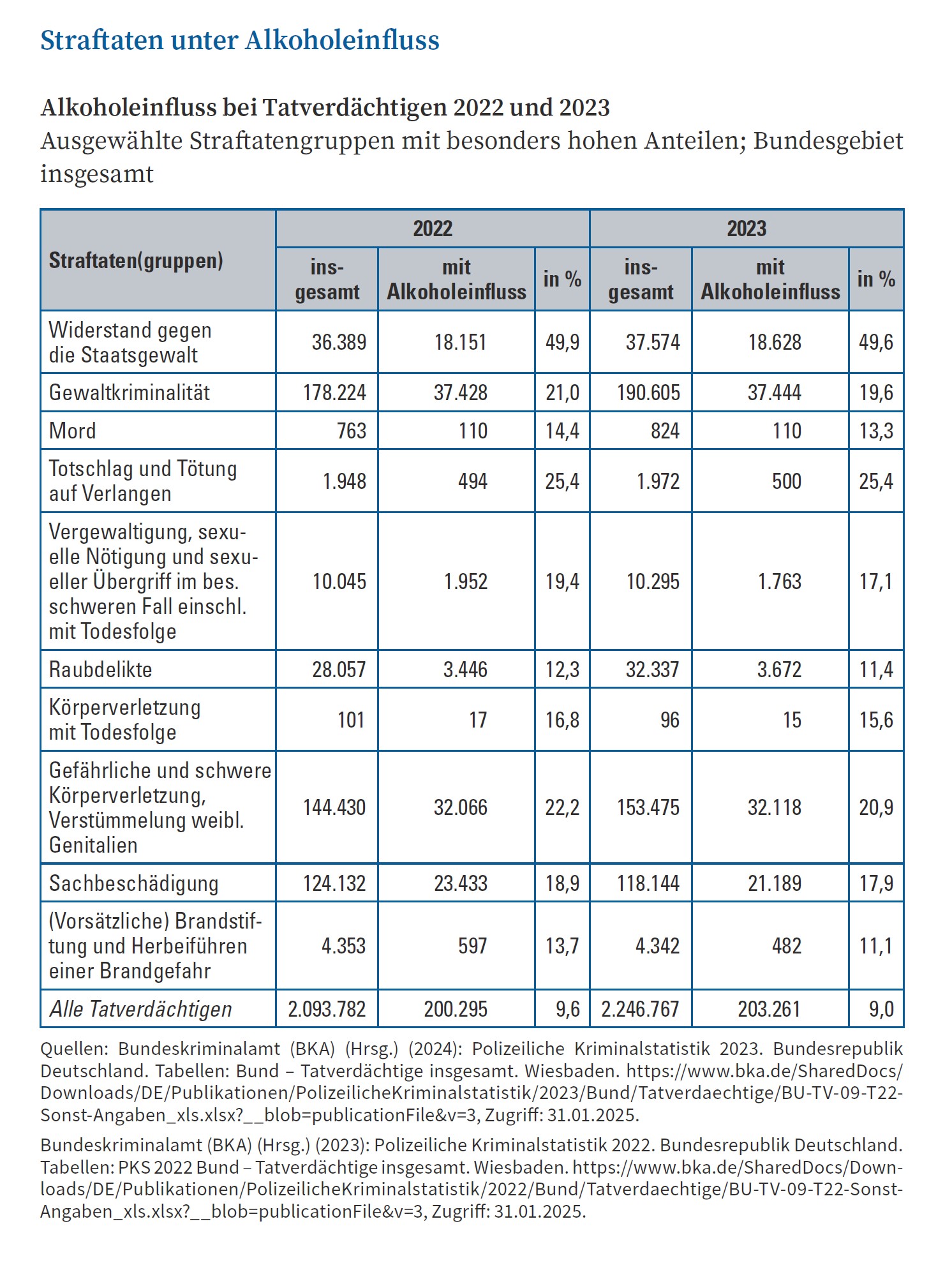 Die ICD-Diagnose „Psychische und Verhaltensstörungen durch Alkohol (F 10) lag bei den Männern auf dem dritten Platz der Hauptdiagnosen für 2023. Eine erweiterte Folge der Bandbreiten von Suizid bis Mord, von Lügeninszenierungen, raffiniertesten Verdeckungen und allen klassischen Suchtsymptomen sind Leiden, die Partner, Familien und alle Umfelder zu tragen haben. Öffentlich beschäftigt sich damit das Kölner Bundesinstitut für Öffentliche Gesundheit unter im Netz kaum auffindbaren Zugang https://www.oeffentlichergesundheitsdienst.de/ und zuletzt das DHS Jahrbuch Sucht 2025 mit Sitz in Hamm, aus dem als Quelle zitiert wird: (https://www.dhs.de/fileadmin/user_upload/pdf/Jahrbuch_Sucht/JBSucht2025_komplett_WEB.pdf. Zwei beispielhafte Tabellen skizzieren diese spezifische Suchtdramatik: